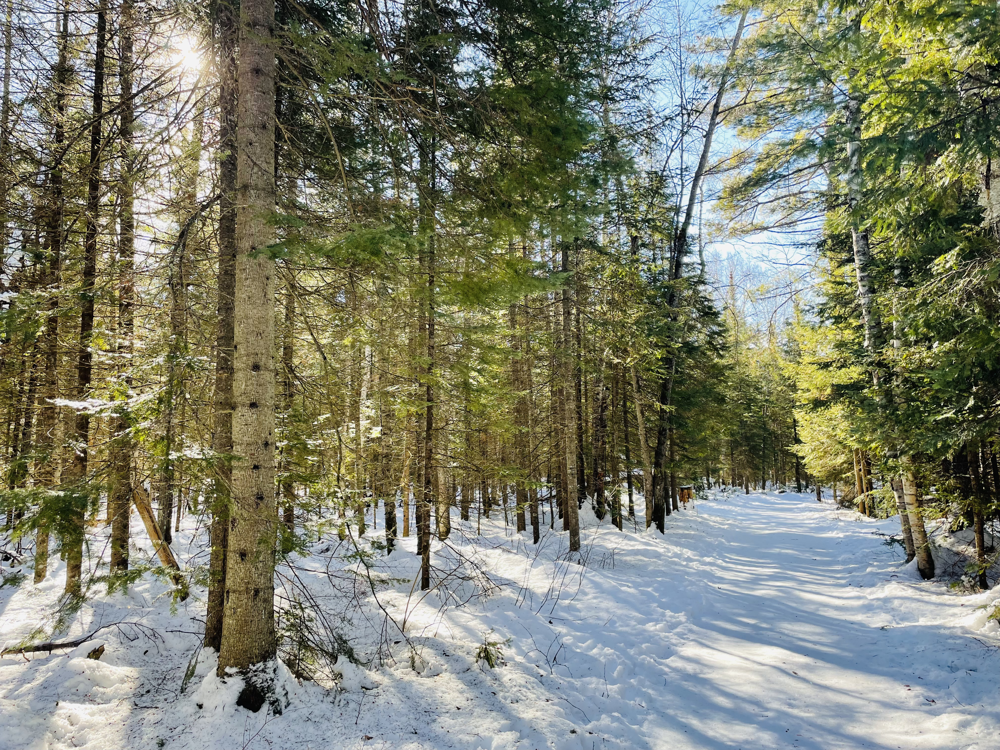 I can't get enough of this combination of sun, snow, and hemlock trees